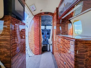 With one of the most spacious and comfortable cabins of its class, this G100 can accommodate up to 7 passengers. There are 4 individual seats in the rear and 1 forward-facing seat opposite the 2-place divan.